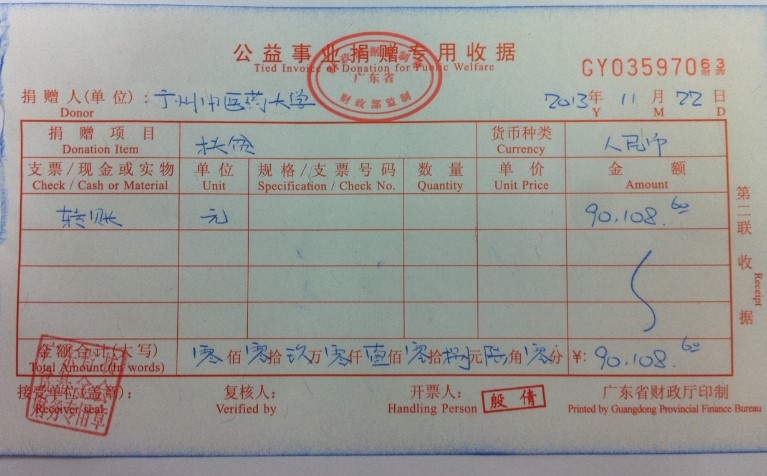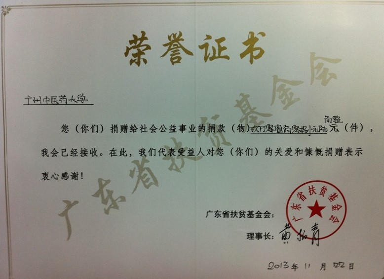 我校2013年"广东扶贫济困日"捐款活动得到广大教职工的大力支持,校本部和三所附属医院共捐款90108.60元。全部款项已于11月22日交到广东省扶贫基金会,并由广东省扶贫基金会按捐款的70%(63076.02元)划拨我校对口帮扶的清远市阳山县大崀镇大崀村。