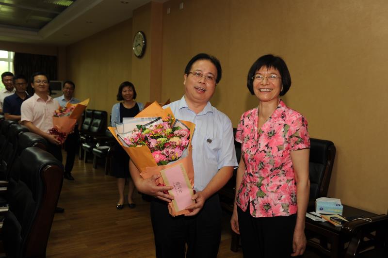 校党委书记张建华代表学校对郭开农副主席一行的到来表示热烈的欢迎和衷心的感谢,对三位优秀教师取得的成绩表示祝贺。张建华指出,我校近年来涌现出大量师德高尚、业务精炼、成绩突出的先进人物和优秀团队,这和上级部门一直以来对我校的关心和指导是分不开的,感谢省总工会和省教科文卫工会给老师们提供了各种展示自我的平台。学校党委将以习近平新时代中国特色社会主义思想为指引,坚定传承和发展中医药事业;继续大力支持工会工作,严抓师德师风、医德医风建设,尊重劳动模范,弘扬劳模精神,让诚实劳动、勤勉工作蔚然成风;坚持改革创新,切实真抓实干 ,以“双一流”和高水平大学建设的标准进一步推进学校各项改革,做破解难题的能手和推进改革的实干家,为建设中国特色、世界一流的中医药大学而不懈奋斗。