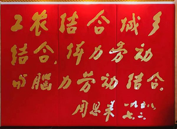大家怀着崇敬的心情参观了周恩来总理纪念馆—-新会劳动大学,这里是爱国义教育基地,也是了解新会产业发展史的基地。1958年7月1日-7日,周恩来总理深入江门市新会等地,进行了7天时间的调研。在这里,周总理写下了“新会劳动大学”几个大字并题词“工农结合、城乡结合、体力劳动与脑力劳动结合”。通过参观,让大家对新中国建设初期,多快好省地建设社会主义、勤奋努力地边学习边劳动的奋斗精神有了更深刻直观的了解。